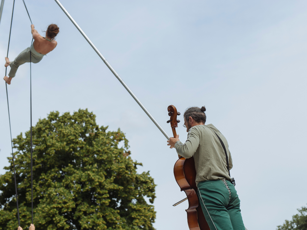 De et avec Pauline Barboux, Jeanne Ragu – acrobates aériennes et Mauro Basilio – violoncelliste.