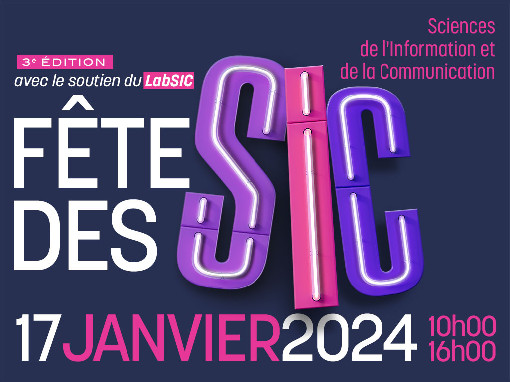 L’UFR des Sciences de l’Information et de la Communication a le plaisir de convier l’ensemble de la communauté universitaire à la troisième édition de la Fête des Sciences de l’Information et de la Communication, qui se tient à l’Université sur le campus de Villetaneuse, le 17 janvier prochain de 10h00 à 12h30 puis de 14h00 à 16h00.